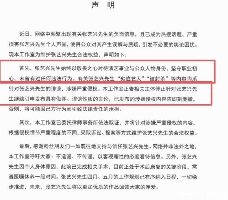 事件持续升温后,张艺兴工作室火速发布严正声明并同步寄出律师函,